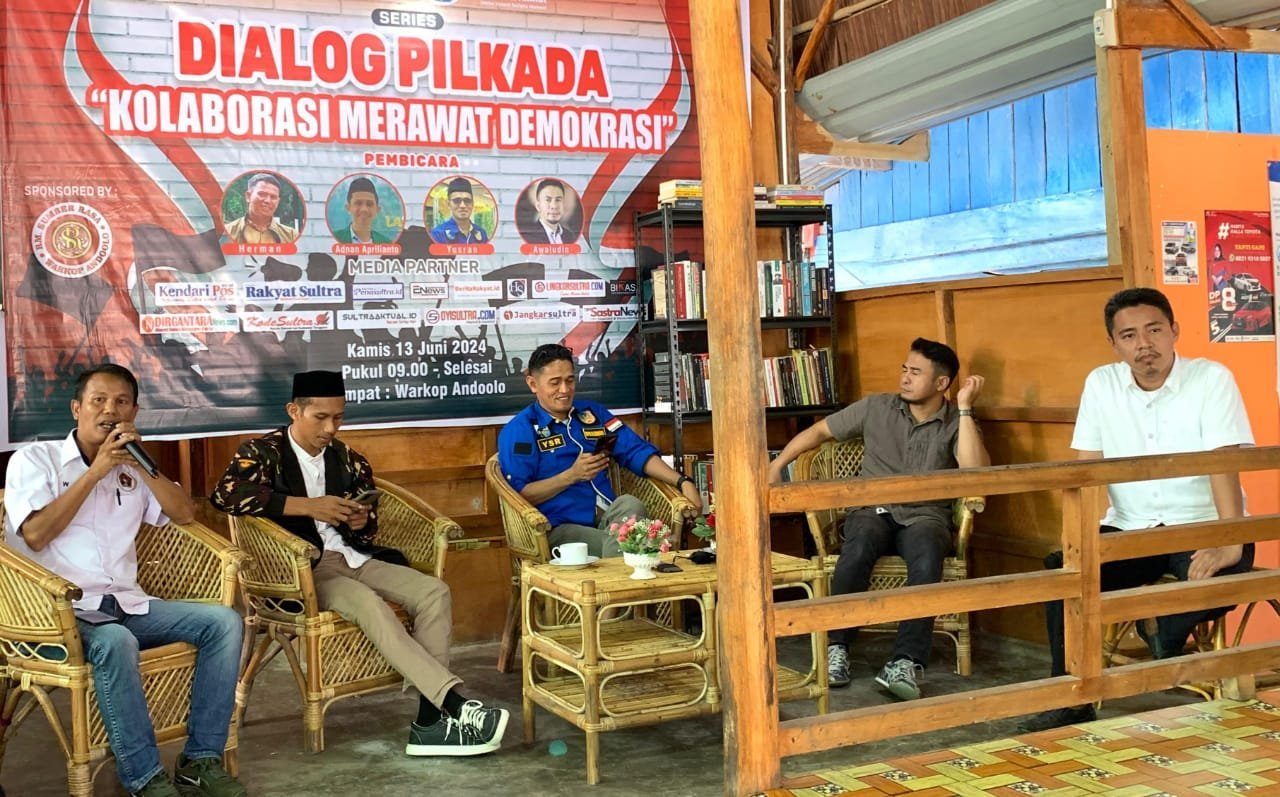 Menurut mantan anggota Bawaslu Konsel itu, dialog Pilkada dengan tema Kolaborasi Merawat Demokrasi yang diprakarsai CEO Warkop Andoolo ini merupakan momentum yang tepat, termasuk untuk terselenggara secara terus menerus dengan menghadirkan pembicara dari unsur luas, seperti dari Parpol, Aparat Penegak Hukum, bakal calon, Penyelenggara Pemilu dalam hal ini KPU dan Bawaslu termasuk Pemerintah.